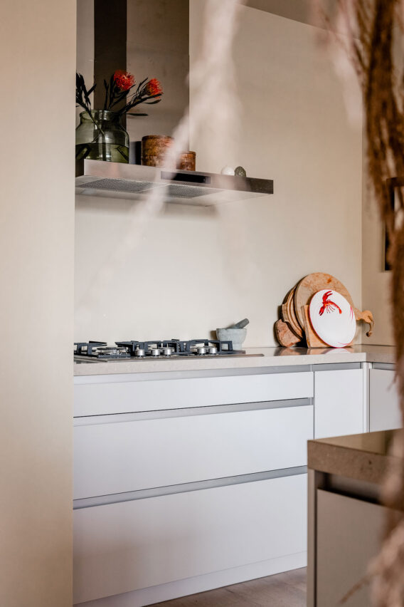 Benthuizen Keuken Scandinavisch Kopen Zonder Kijken Greeploos Hoekkeuken A-MERKEN VOOR BODEMPRIJZEN BEZORGING EN INSTALLATIE MOGELIJK LAAGSTE PRIJSGARANTIE vanaf € 7.899,- € 87,-/mnd Maak een afspraak Keuken met harmonieuze en elegante uitstraling De zevende aflevering van Kopen zonder Kijken brengt ons naar Benthuizen, waar Santosh en Vanity met hun twee kinderen behoefte hebben aan een ruime keuken. Ook deze aflevering lukte het team van Kopen zonder Kijken en Keukensale.com weer om een keuken boven verwachting te leveren. Santosh en Vanity waren overweldigd toen ze het resultaat bewonderden. MessingKnoppen, spoelbak en kraan Werkbladduurzaam en krasvast Tot hun grote verbazing en vreugde werd er een prachtige keuken voor hen gekozen. Om een ruimtelijker gevoel te creëren, koos ons team voor een L-opstelling. Door daarin met hoge kasten te werken, kreeg de keuken extra opbergruimte en een moderne uitstraling. Door te kiezen voor een taupe-kleur voor zowel de frontjes als het blad, werd alles één geheel en kreeg de ruimte bovendien een rustige en harmonieuze sfeer waarin ze heerlijk tot rust kunnen komen. Bijzondere details vind je in de messing knoppen, de messing spoelbak en bijpassende kraan. Messing past enorm goed bij een warme kleur als taupe en geeft deze elegante keuken nog meer stijl.Het keukenblad is gemaakt van gerecycled materiaal: ideaal, want dit is niet alleen sterk en krasvast, maar ook enorm duurzaam en milieuvriendelijk. Veel Opbergruimtedoor extra ruime kasten Keuken: Veel Opbergruimte door extra ruime kasten Messing Knoppen, spoelbak en kraan Werkblad duurzaam en krasvast Totaalprijs: Dit is een basisprijs, inclusief BTW, exclusief levering & montage. vanaf € 7.899,- € 87,-/mnd Stel 'm samen met Keukensale Maak een afspraak Stel ‘m samen met een van onze adviseurs! Alles is mogelijk! Zijn deze Scandinavisch keukens iets voor jou? Bekijk alle keukens Vught Keuken Scandinavisch Greeploos Hoekkeuken vanaf € 10.669,- € 117,-/mnd